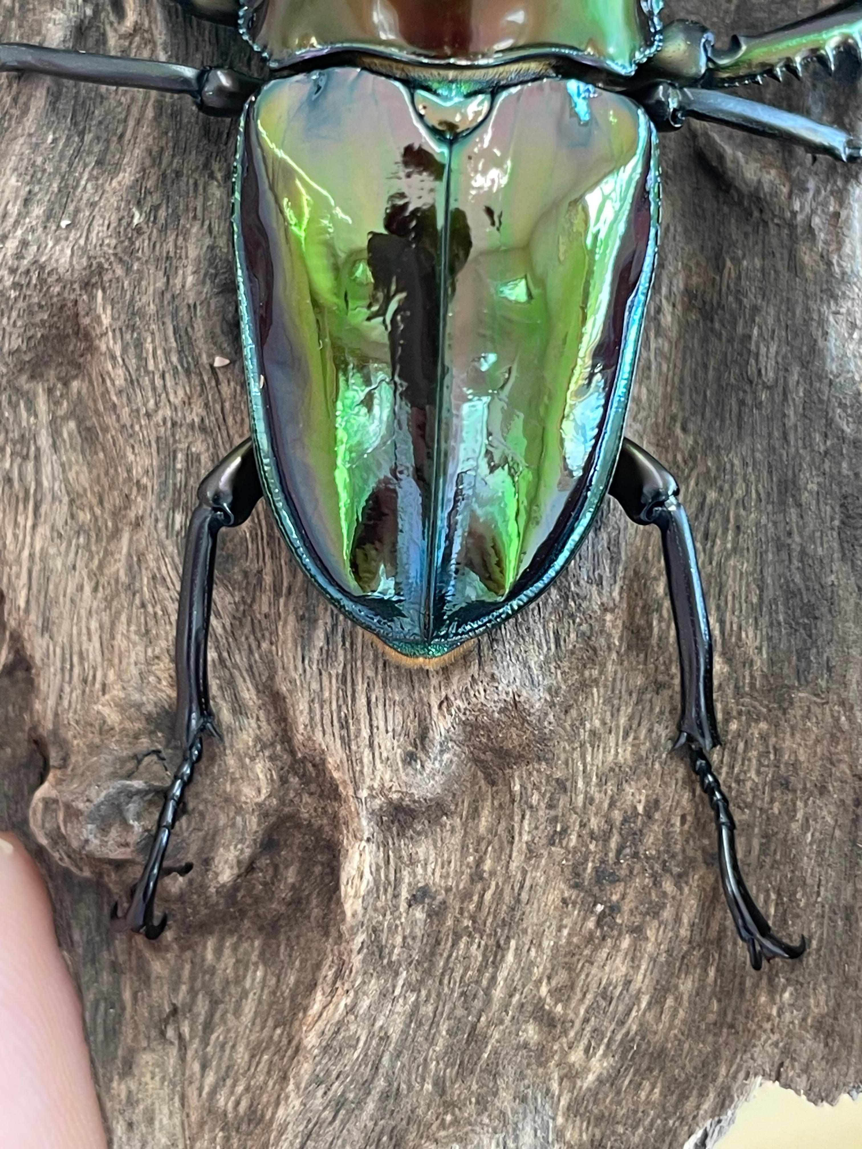 ②前胸の光沢の強い個体は、ヤフオクでもよく見るようになりましたが、オーロラ改は、上翅も驚異的な鏡面光沢です。